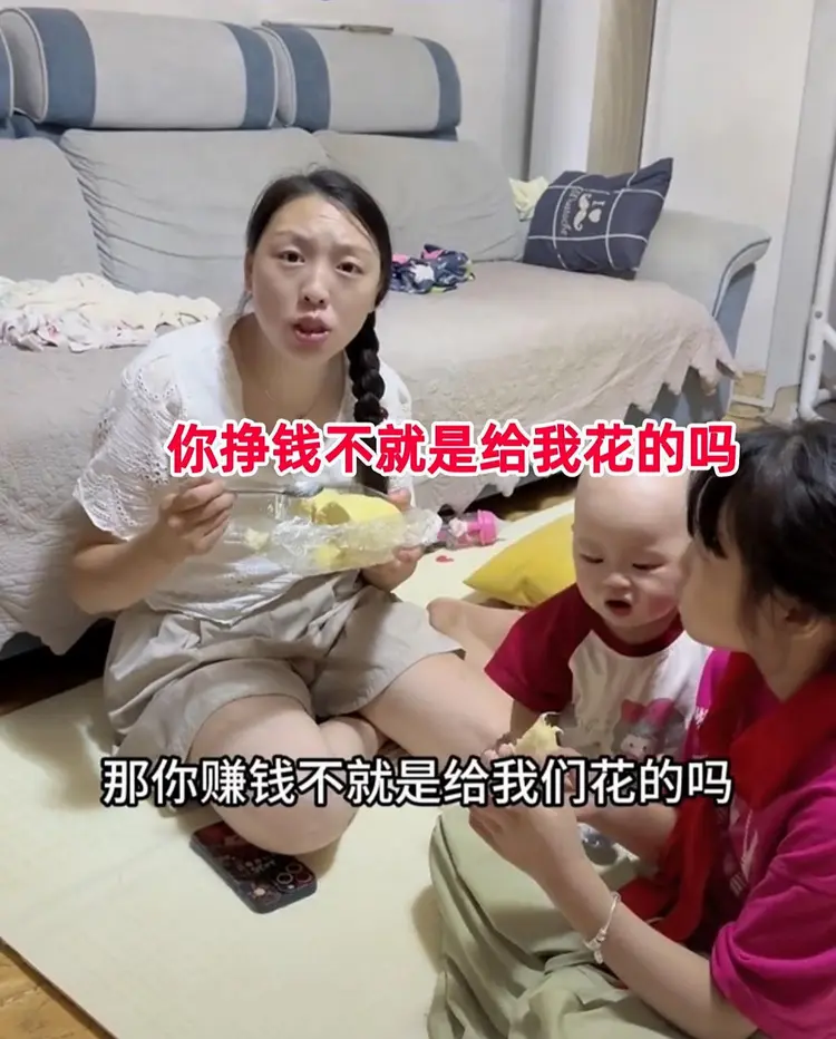 面对丈夫的抱怨,妻子却不以为然地回应道:“可是我就爱吃榴莲,怎么了?你挣钱,不就是给我和这个家花的吗?”