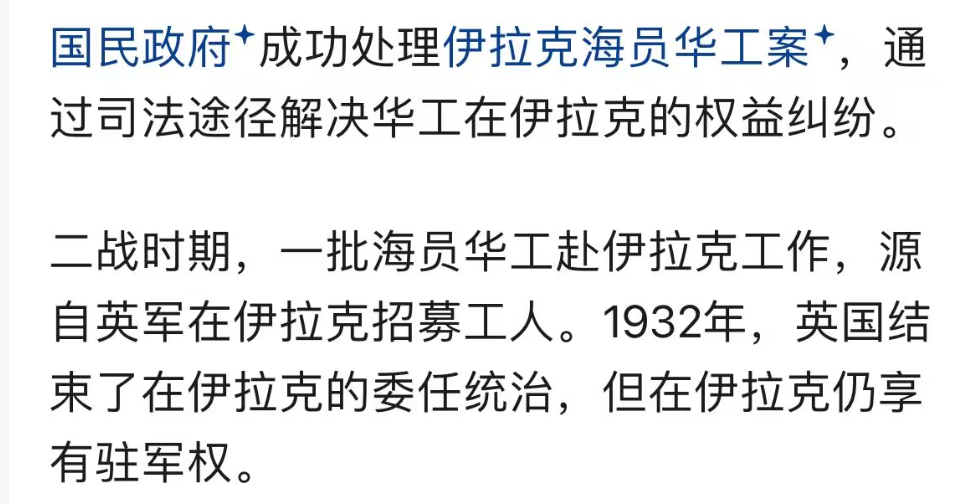 就像相当一部分网友津津乐道的海外护侨行动,其实我们早在民国时代就已经做到了,而且还是远在中东的伊拉克。