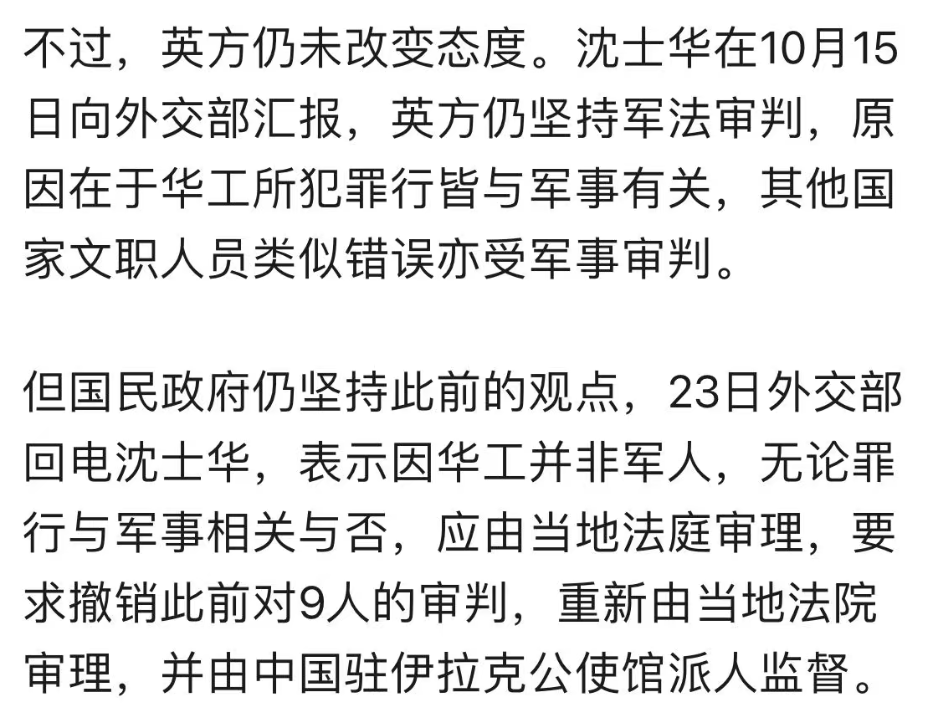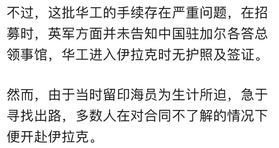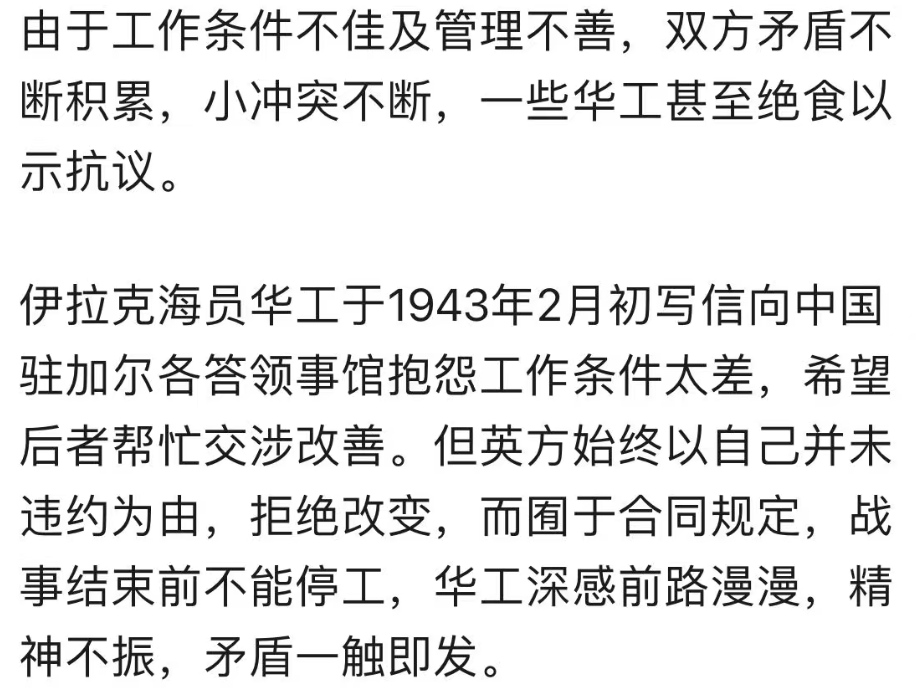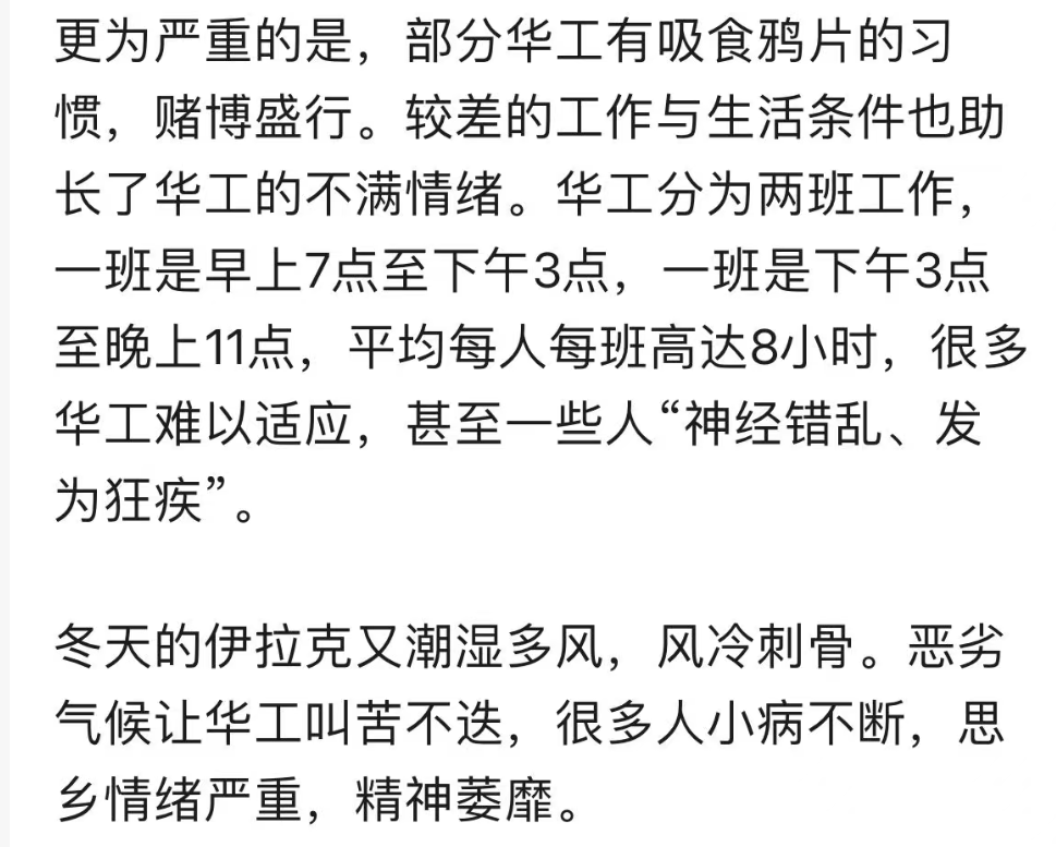 在伊拉克的华工生活也得以大为改善。
