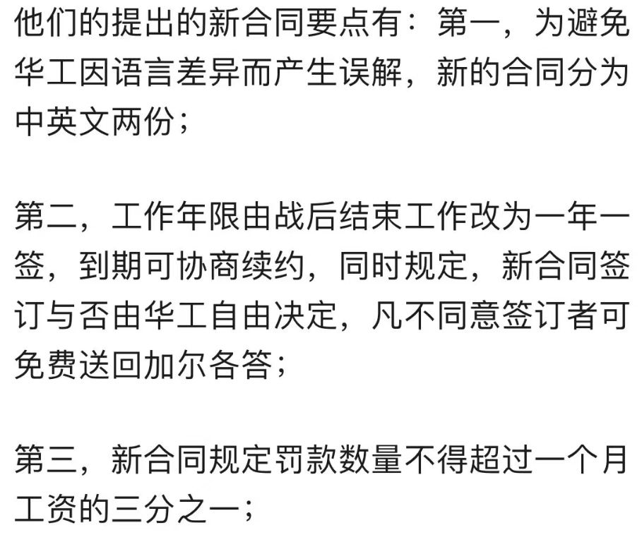 后面也废除了夜间工作的规定,让华工得以有充足时间休息。