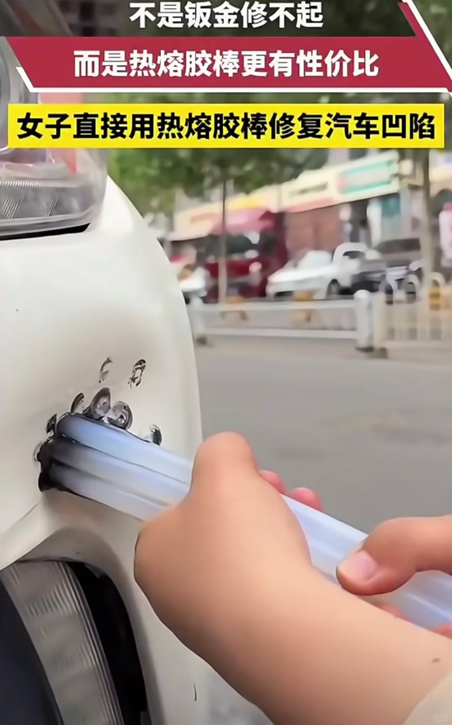 通过修复保温杯的凹陷能够举一反三,其实还可以用这个方法来修复汽车的凹陷,只要汽车出现刮蹭不小心车的表面出现凹陷,不是特别严重,都可以利用热熔胶棒来搞定。