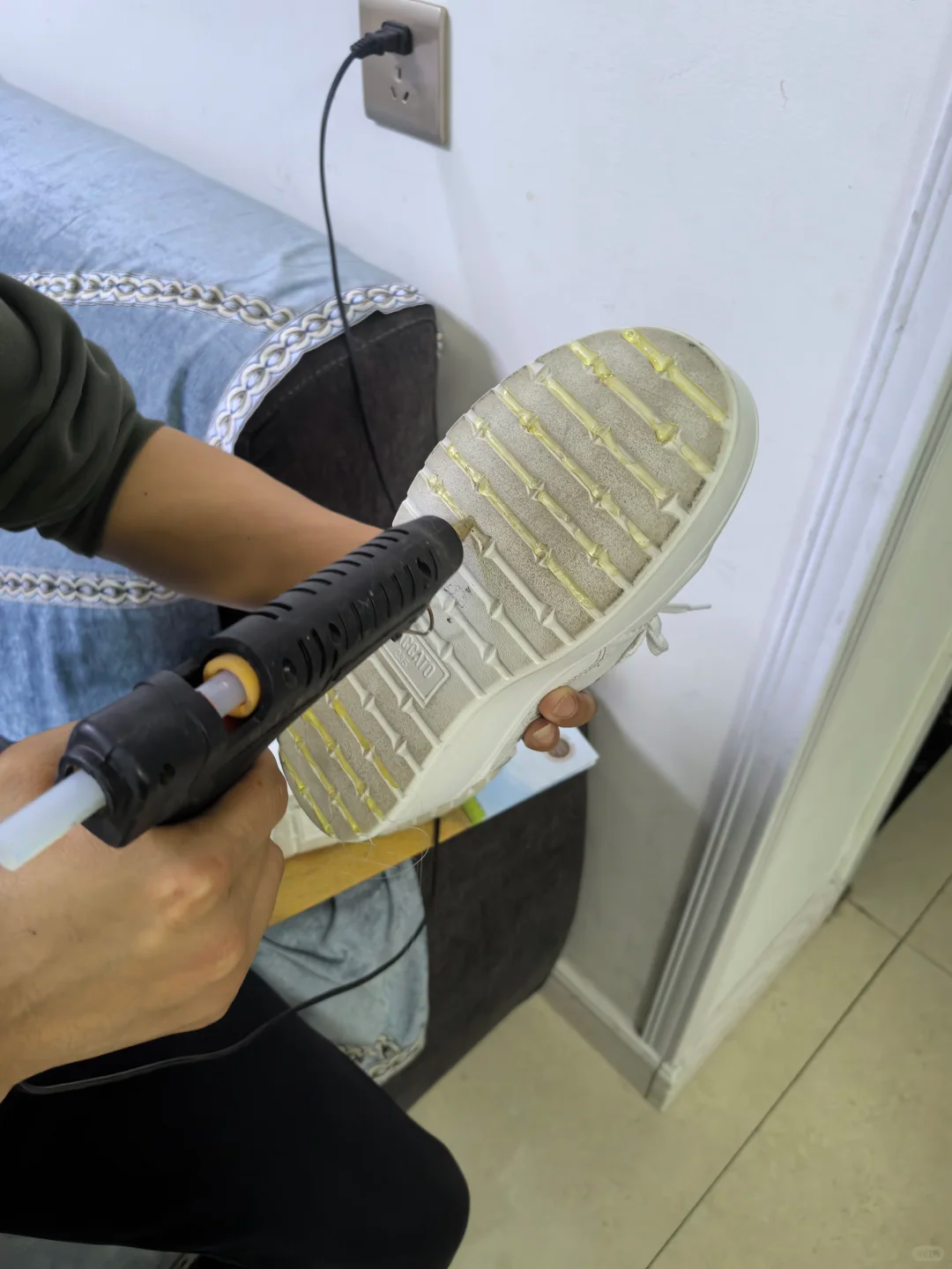 其实可以利用热熔胶增加鞋底的防滑,使用胶枪将热熔胶棒融化之后,涂抹在鞋底等到干了,走路就不会打滑了。