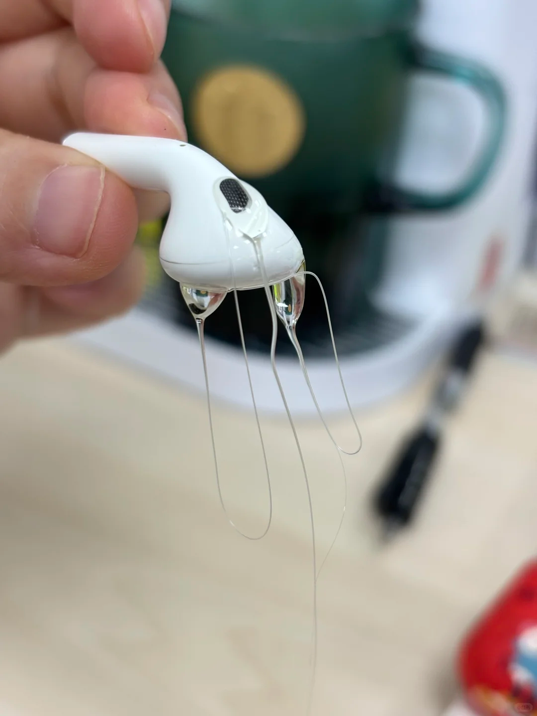 把热熔胶融化之后直接怼进耳机孔当中,就能将里面的脏东西粘出来,平常清理不到的地方也能清理干净,停滞的时间不要太长,等到热熔胶凝固之后就往外拔。