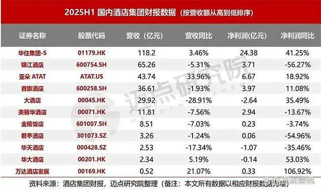 数据显示,2024年行业平均每房收入为118元,同比下降9.7%。今年一季度,尽管多个假日档期的出游人数和消费总量创下新高,但行业每房收入仍出现5%的同比降幅。这一数据的持续走低,直接导致了酒店营收的断崖式下降。据迈点研究院统计,今年上半年,国内上市酒店集团中超过半数出现营收下滑。