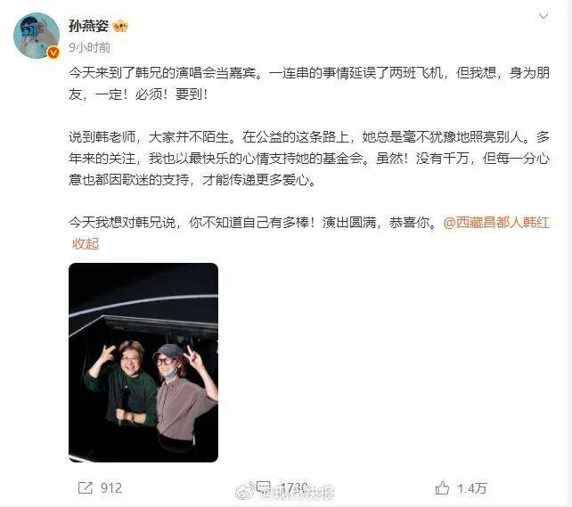 来源:现代快报/现代、极目新闻、潇湘晨报、@西藏昌都人韩红、@孙燕姿