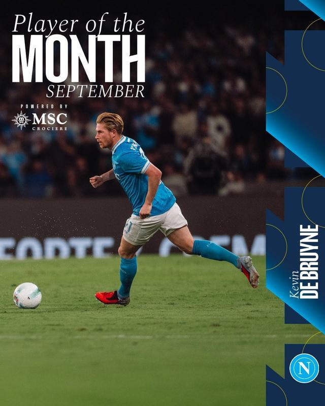官方消息,比利时中场球星德布劳内凭借9月的出色表现,成功当选那不勒斯队内9月最佳球员。