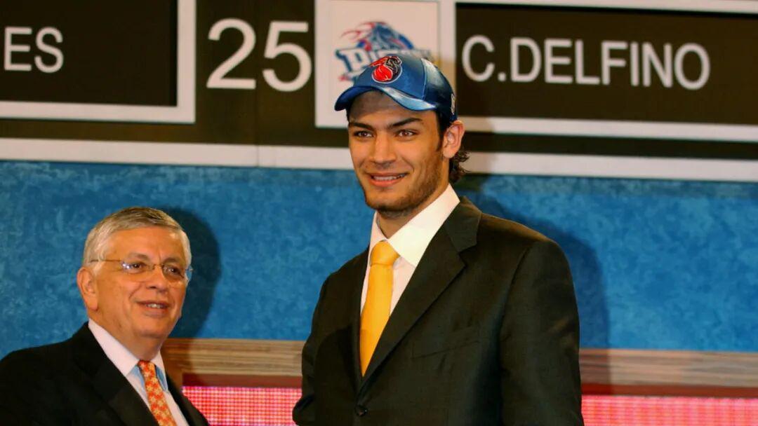 和吉诺比利一样,德尔菲诺被选中后并未立即登陆NBA,而是选择在意大利联赛再打一年。直到2004-05赛季,他才正式加盟底特律活塞队。彼时的活塞刚夺得NBA总冠军,主教练拉里·布朗不喜重用新秀,德尔菲诺的新秀赛季仅出战30场,第三个赛季场均出战16.7分钟,贡献5.2分3.2篮板1.1助攻。