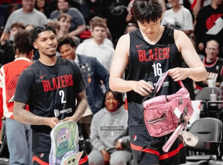 除了场上的出色表现,杨瀚森在场下也展现出了极高的融入度。在恶搞新秀的环节中,当乐福还在犹豫选择绿色书包还是粉色书包时,杨瀚森主动选择了粉色书包,并大方地与啦啦队一起跳舞,展现出了他开朗、自信的性格,无论是场上还是场下,他都完美融入了开拓者这个大家庭。