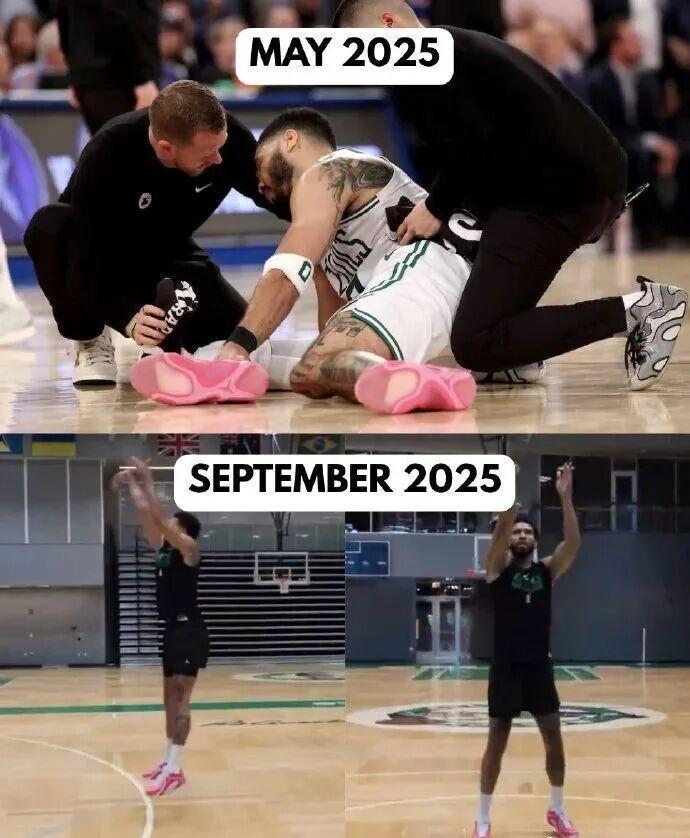 不得不感叹,年轻就是好以及现在医疗技术的发达。同样是跟腱重伤,27岁的塔图姆已经能够在球场上生龙活虎,而35岁的利拉德也能做一些简单的投篮动作了。