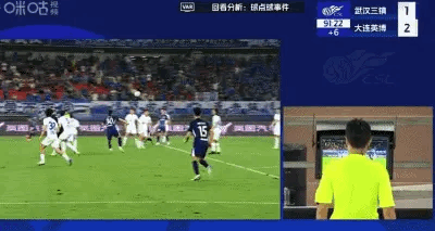再来说说朱鹏宇被吹的点球。在比赛第86分钟,朱鹏宇在禁区内背身拿球后,想要转身射门,此时青岛西海岸的中卫孙捷伸手拽倒了朱鹏宇,主裁判马运坤第一时间没有判罚点球,但经过VAR裁判刘钊的提醒后,在看过VAR后,依旧维持了原判。对于此判例,评议组一致认为:青岛西海岸36号队员对大连英博16号队员实施拉扯犯规,应判罚球点球。这一明显的拉拽行为,不被判罚点球,让人难以理解。