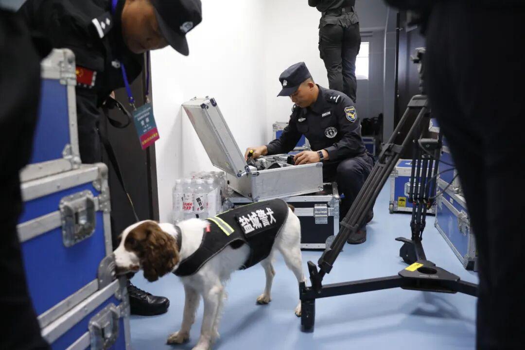 在风雨中坚守岗位的安保人员
