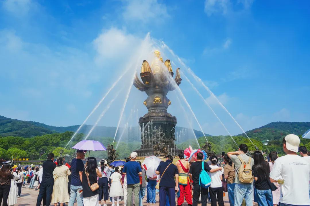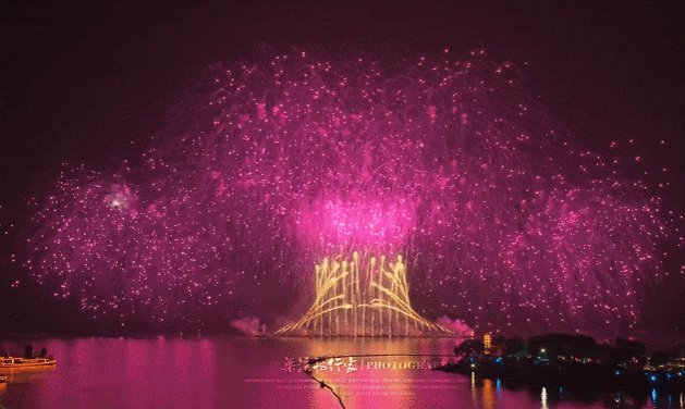 △假期期间,无锡太湖鼋头渚的国庆中秋水上音乐烟花大会