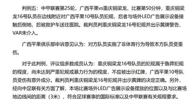 此外,对于广西平果俱乐部申诉的第60分钟可能点球判罚,评议组一致认为重庆铜梁龙防守队员先触到球,随后接触到对方队员,无犯规动作,不构成犯规。