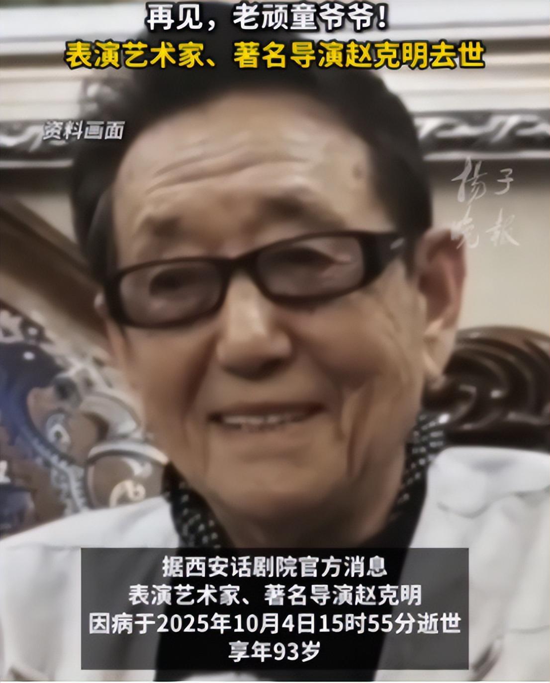 2025年10月4日,西安话剧院突然发布讣告:一级演员赵克明离世,享年93岁。