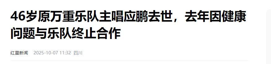 当时大众以为他只是淡出舞台,但没想到噩耗却突然传来,2025年10月7日,应鹏因病离世。