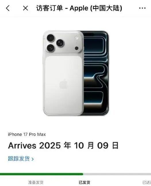 有网友分享了自己的亲身经历,他在9月19日下单了银色512GB版iPhone17ProMax,原本预计10月19日才发货,但没想到苹果官网提前10天就开始发货了。