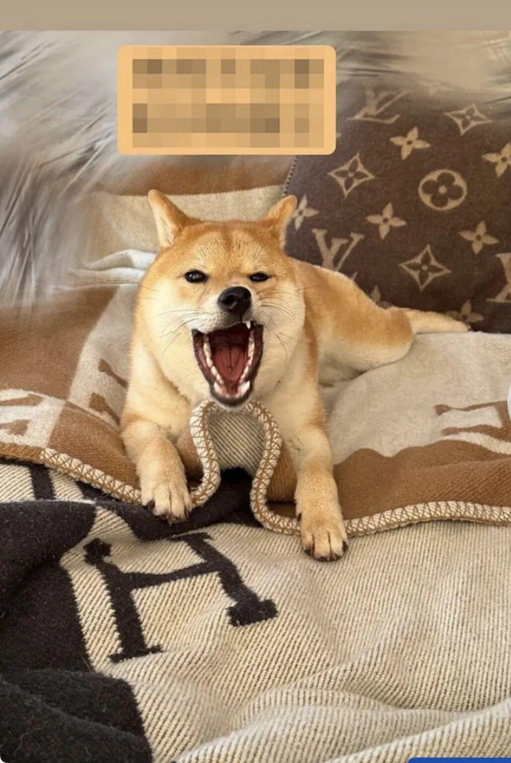 她的柴犬「旺仔」戴着价值990美元的Celine项圈,拥有自己的路易威登枕头和爱马仕毯子。