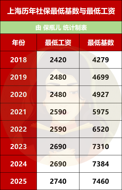 就说上海,2018年最低基数是4279元,最低工资是2420元。