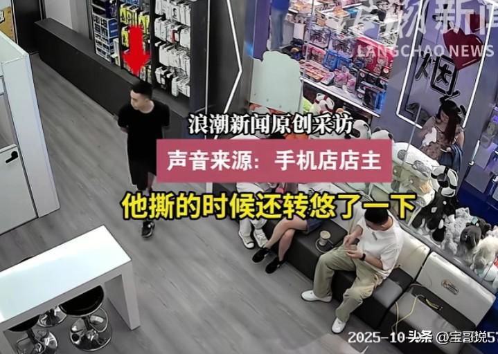 期间黑衣男子突然站起来在店内四处转悠,看似在看店内产品,实际上他关注的其实是店老板所在方向。