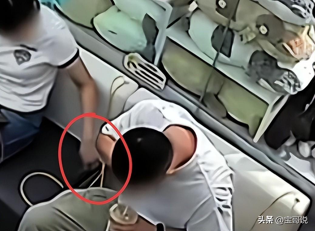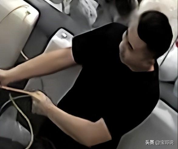 见时机已成,男子就回到原先的座位,只见他先拿起一根数据线,看似在使用的样子,动作来回摸索,突然之间就将手上那根线扯断了。