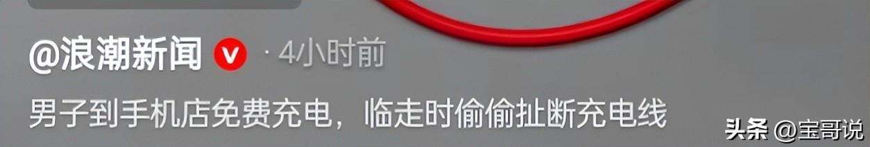 近日,有网友在网上发布视频,称有一黑衣男子,在其手机店免费充电区充电后,故意扯断数据线后离开。