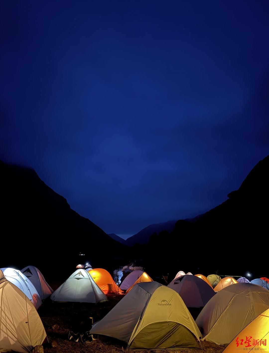 “小小”告诉红星新闻,他们一行7人于10月2日从甘肃张掖肃县百花掌出发,计划穿越老虎沟到达青海海北门源县。他们都是有相关经验的重装徒步者,其中包括一名经验丰富的“大佬”级驴友。10月3日,一行人到达乱石窝扎营,当晚营地有二三十顶帐篷,都是结队穿越老虎沟的徒步者,其中不少是大学生。