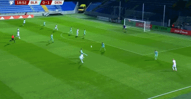 上半场补时阶段,霍伊伦展现出了出色的传球能力,他助攻多古空门推射破门,丹麦队以4-0的比分结束了上半场的比赛。