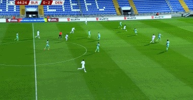 第45分钟:霍伊伦再下一城,丹麦3-0领先