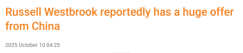 北京时间10月10日,NBA自由市场持续波动,威斯布鲁克(拉塞尔·威斯布鲁克)至今未与任何NBA球队达成签约协议。由于在NBA市场的吸引力下降,这位前MVP球员或将目光转向海外联赛。据国王队随队记者卡迈克尔·戴夫透露,威斯布鲁克已收到一份来自中国球队的巨额合同邀约。
