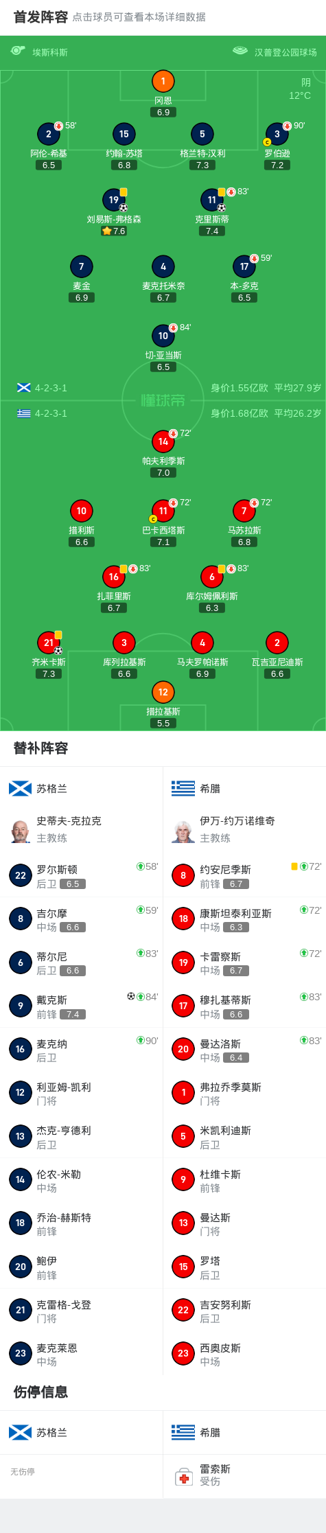 比赛开场后,希腊队迅速进入状态。第62分钟,希腊球员齐米卡斯抓住苏格兰后防线的失误,率先为球队打破僵局。这一进球让希腊队看到了客场取胜的希望,也迫使苏格兰队加快进攻节奏。