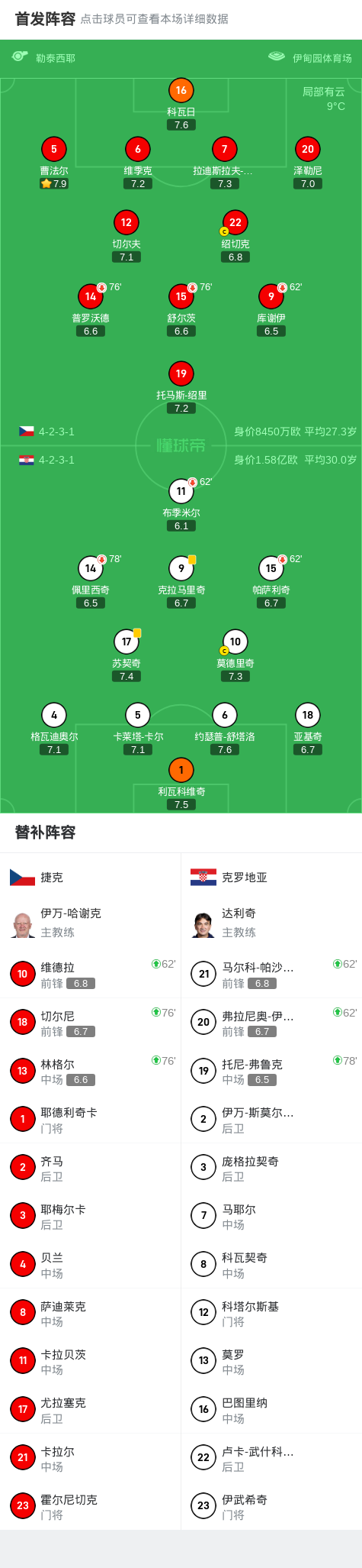 北京时间10月10日,世界杯欧洲区预选赛第一阶段小组赛第7轮迎来一场焦点对决,捷克队坐镇主场迎战克罗地亚队。经过90分钟的激战,双方最终以0-0的比分握手言和。