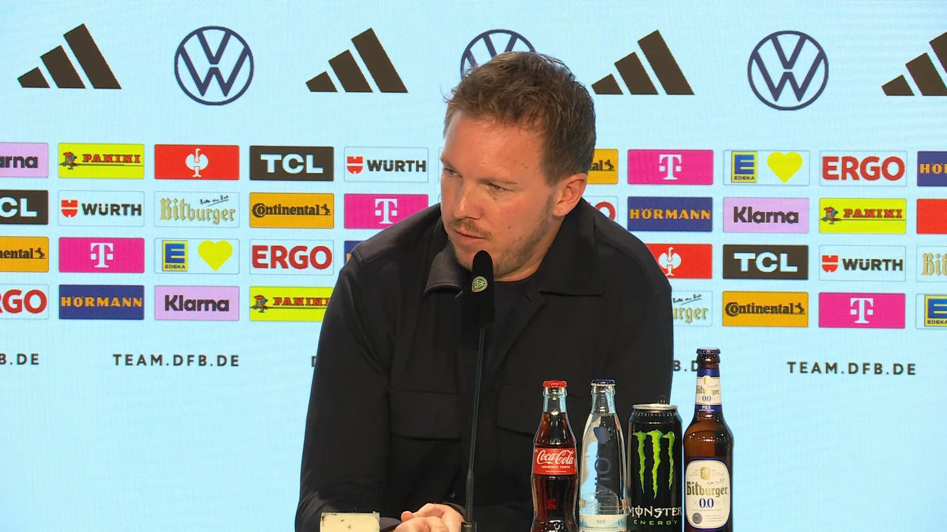 在此次征召名单中,放弃马克西米利安-米特尔施泰特而选择达维德-劳姆作为首发,引发了广泛讨论。当被问及如何看待劳姆的情绪化表现时,纳格尔斯曼表示:“我已经和马克西(米特尔施泰特)深入讨论了所有内部事宜,这些内容将保留在我们之间。他的表现并不比其他两位候选人差很多,但达维德是一个我们必须根据当前情况选择的球员。他情绪饱满,总是充满活力地奔跑。我认为他在莱比锡的这个赛季,因为所担任的角色,又向前迈出了一步。”