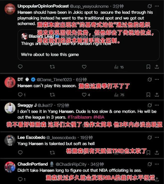 网友@油炸粑粑:欢迎小杨来到NBA,对抗体力等方面还需努力吧,和波斯特的直接对位被爆了,裁判哨子也针对性的吹不停,数据层面确实不好看,不过第一场,后续加油吧!新人嘛,总要有个适应过程。