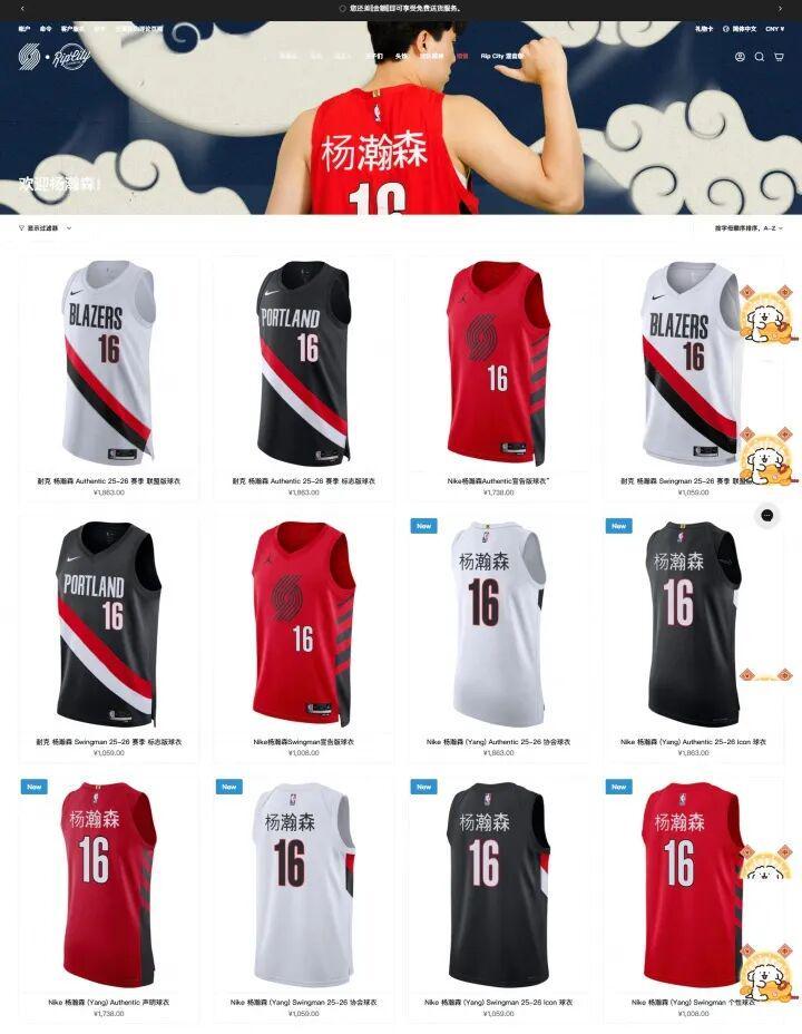开拓者官方网店上架了杨瀚森的中文版球衣。其中球员版球衣共三款,售价区间为¥1738-1863人民币($238-255美元),还原职业赛场装备质感。球迷版球衣同样有三款,售价区间为¥1008-1059人民币($138-478美元),兼顾日常穿着与收藏价值。