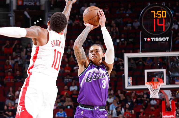 在NBA季前赛的一场焦点对决中,主场作战的休斯顿火箭以140比127力克犹他爵士,收获季前赛两连胜,目前战绩为2胜0负;而爵士则遭遇季前赛开门黑,战绩为0胜1负。尽管爵士输掉了比赛,但球队后场新星基昂特-乔治(Keyonte George)的表现却令人眼前一亮。