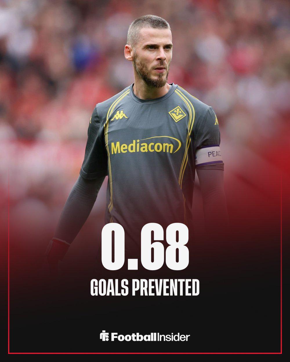 雷速体育10月10日讯,英国权威媒体Football Insider最新发布的一组统计数据引发足坛热议——现役门将德赫亚以每90分钟0.68次成功扑救的惊人效率,力压五大联赛所有同位置球员登顶榜首。