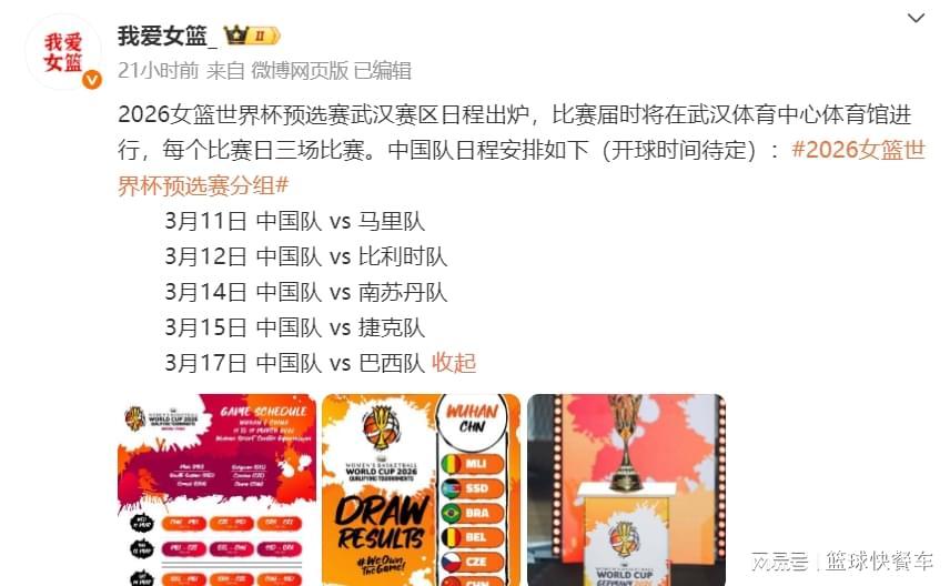 尽管距离2026年女篮世预赛正式开战还有数月之久,但国际篮联已提前公布了详细的赛程安排。中国女篮将在7天内连续进行5场硬仗,从小组赛首战对阵非洲劲旅马里,到次战挑战欧洲强队比利时,再到收官战迎战美洲劲旅巴西,赛程紧凑且充满挑战。然而,从分组形势和对手实力来看,中国队冲击小组第一的希望依然很大。