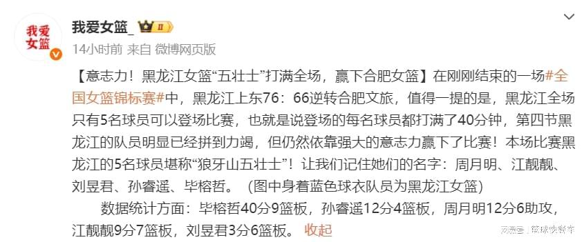 中国篮坛近日上演一场令人瞠目结舌的比赛!在2025年全国女篮锦标赛第二阶段小组赛中,黑龙江女篮与合肥女篮的对决本被视为普通赛事,却因一场史无前例的「5人马拉松」引发全网热议——黑龙江全队仅5名球员轮转40分钟,最终以77-66完成惊天逆转。