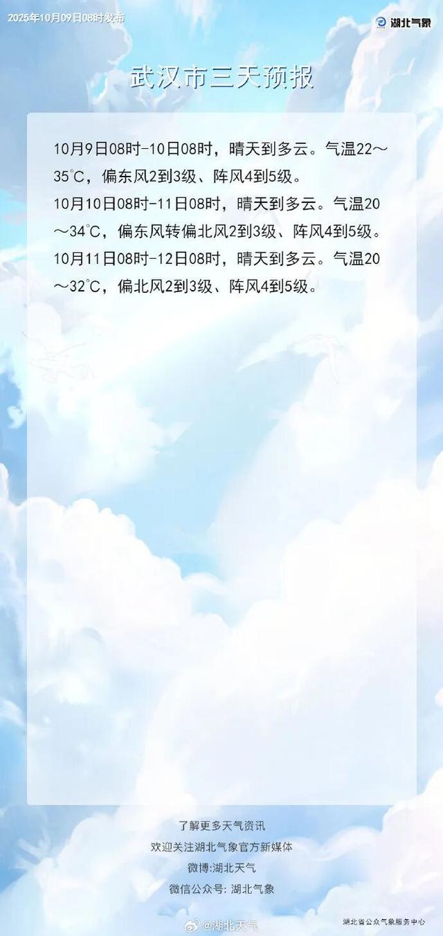 然而,好消息是降温时间已经确认。据@湖北天气 官方消息,从10月13日开始,湖北地区将迎来一次明显的降温过程。具体天气趋势显示,12日至14日,我省将有一次降水过程,其中鄂西局地可能会有大雨到暴雨;而16日至18日,还将有一次降水过程。在其他时段,全省大部分地区则以晴天到多云为主。值得注意的是,9日至12日,鄂东部分地区的最高气温仍可能达到35℃以上;但13日以后,受冷空气和降水的影响,气温将下降4~10℃,给市民带来一丝凉意。