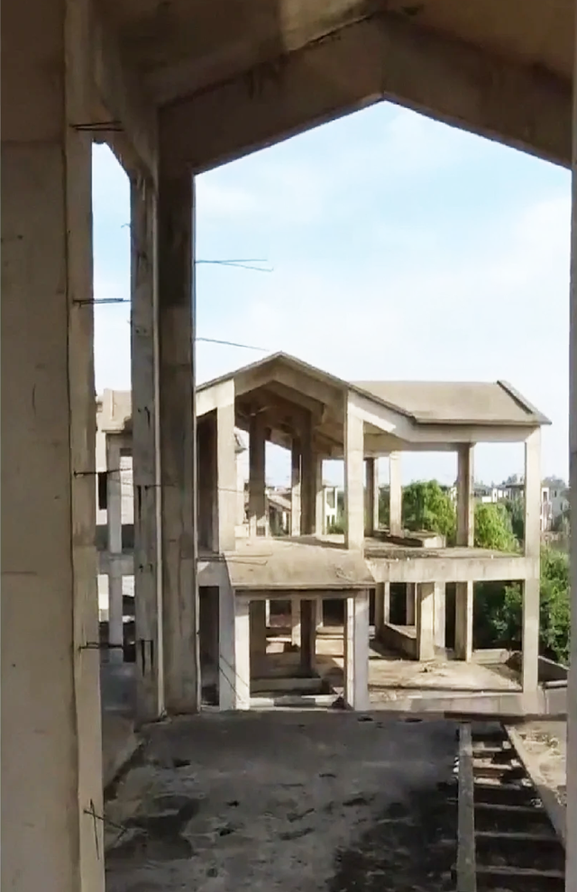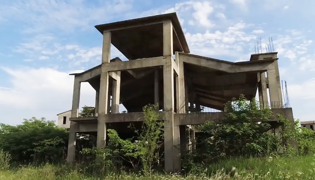 如今,项目内仅有零星住户:酒店靠租赁勉强维持,部分别墅被业主自行改造入住,更多区域则彻底荒废。留守的看房人养起了羊群,曾经设想的豪华会所只剩残破的水泥骨架,在日晒雨淋中不断剥落。无人机航拍画面显示,大量未完工建筑被绿色防护网包裹,像一道道伤疤横亘在湖光山色之间。