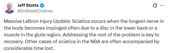 另一位运动医学专家Jeff Stotts强调,坐骨神经痛的核心病因是人体最长神经受压,根源多在于腰椎间盘病变或臀部肌肉异常。他特别指出:“NBA历史上此类伤病往往伴随长期休战,解决神经压迫问题才是康复关键。”