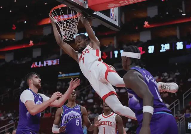 在刚刚结束的NBA季前赛中,火箭队以140-127的比分击败爵士,取得了两连胜的佳绩,为即将到来的常规赛奠定了良好的基础。火箭队在季前赛中的磨合显得相当完美,尤其是新援杜兰特的首秀,展现出了与球队的极高兼容性。这位超级巨星不仅是一名出色的终结手,还具备一定的持球组织能力,为火箭队的进攻端增添了更多可能性。