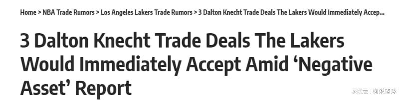 面对这样的困境,当地媒体开始为湖人队出谋划策,建议他们考虑将射手道尔顿-克内克特送往东部。媒体认为,如果克内克特继续留在湖人队,他的价值可能会持续走低。在众多潜在的下家中,布鲁克林篮网队成为了头号选择,而夏洛特黄蜂队和多伦多猛龙队这两支青年军也榜上有名。