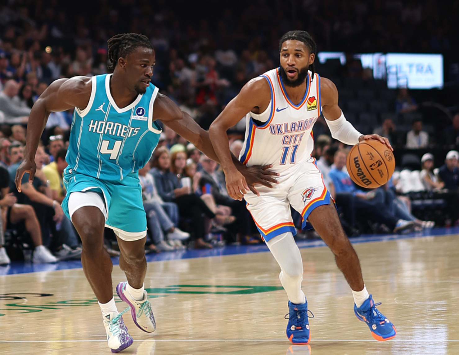 首节比赛,雷霆队迅速进入状态,哈滕、亚历山大和卡鲁索联手打出一波9-0的进攻高潮。但黄蜂队很快由鲍尔、迪亚巴特和布里奇斯回应一波9-0,双方战成平手。随后,卡鲁索、亚历山大和多尔特再次发威,打出一波12-0的攻击波,帮助雷霆以21-9领先。塞克斯顿个人独得12分紧咬比分,但亚历山大、巴恩海泽和以赛亚乔的连续得分,让雷霆首节结束时以31-21领先。