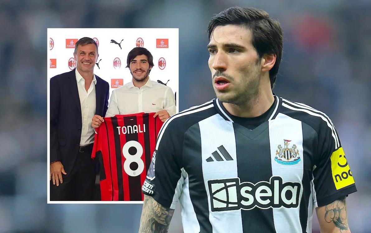 现年25岁的托纳利出自布雷西亚青年队,2020年夏窗以500万欧元的价格租借加盟AC米兰,次年在马尔蒂尼的斡旋下,又以1400万欧元的低价正式转会红黑军团。2023年夏天,米兰以5900万欧元的高价将托纳利卖给纽卡斯尔,其中一小部分转会费支付给了布雷西亚。