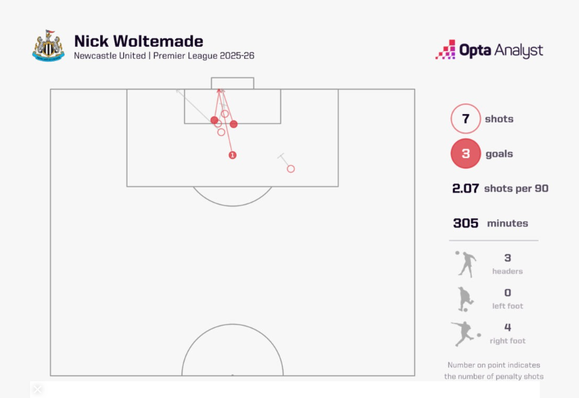 顶替离队加盟利物浦的伊萨克,德国前锋沃特马德承受着巨大压力。其技术特点与前任截然不同:11次做球位列中锋前三,4次独立射门组织展现策应能力,7场4球(英超3球)的效率更令人惊艳。对阵狼队的强力头槌与力压加布里埃尔的破门,印证其34.2公里/小时的冲刺速度与制空威胁。脚下技术细腻程度超出预期,成为纽卡进攻体系的关键枢纽。
