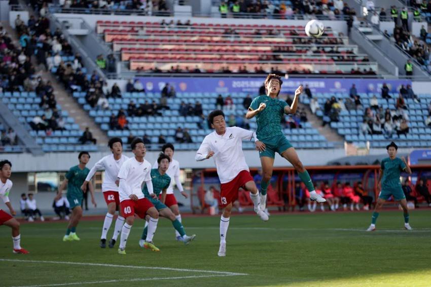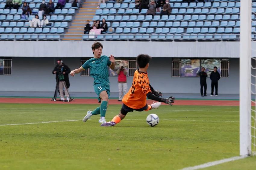 下半场易边再战,延吉东北虎队延续了上半场的进攻火力。第45分钟,31号周震接队友妙传,在禁区内冷静调整后射门得分,将比分改写为3:0。短短5分钟后,周震再度发力,他凭借敏锐的门前嗅觉,接到队友传中球,凌空抽射破门,实现“梅开二度”,将比分锁定为4:0。