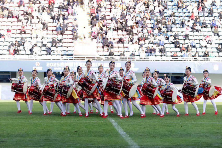 比赛中场休息时,延吉市商务局组织了现场抽奖活动,延吉市公园小学表演了足球操,延吉市中央小学表演了长鼓舞,为比赛增添了更多欢乐氛围。