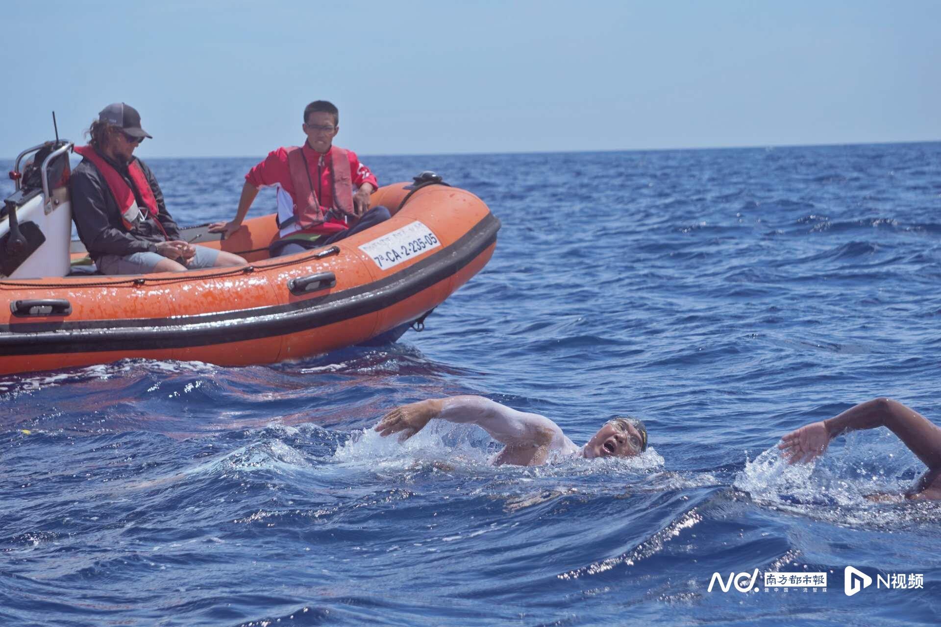 ‘在游莫洛凯海峡时,我丢了三次。’回顾那次横渡经历,陈苏伟告诉南都N视频记者,当时他曾一度(跟补给队伍)失联46分钟。那时是深夜,他在水中只能看着船上的小灯判断方向,然而巨浪让他与导航船失去联系,海上雷鸣闪电,海下还可能会有鲨鱼出现。