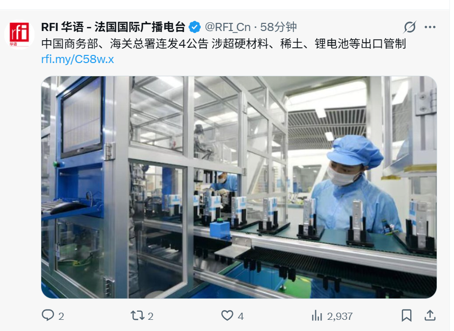 10月9日,中国商务部在24小时内连发四道出口管制令,目标直指稀土技术、稀土设备、超硬材料和锂电池关键材料。这一系列动作不仅引发国际市场高度关注,更被视为中国在关键战略物资领域的一次重要布局。
